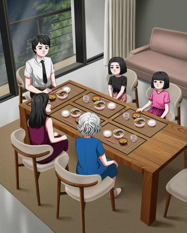 From the kitchen, Kumako heard their Obaachan reply, “Okaerinasai.”